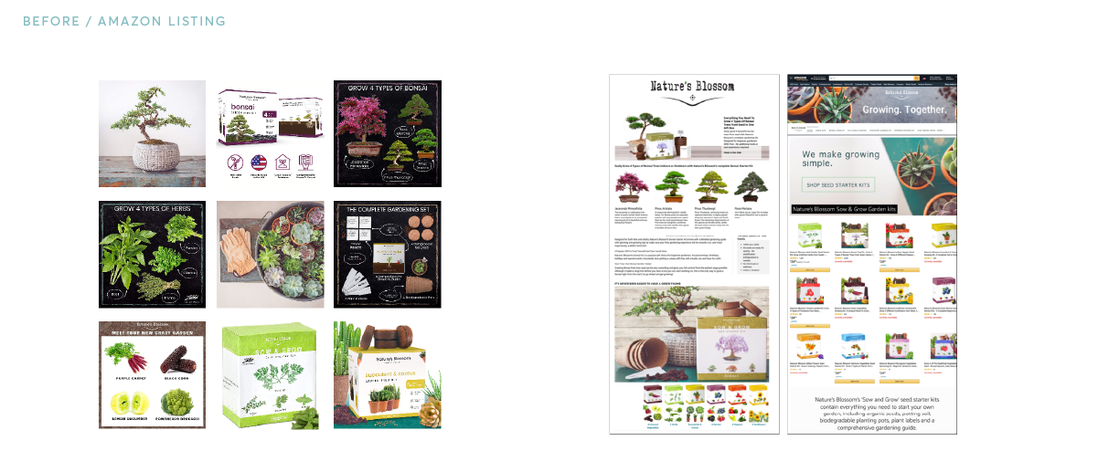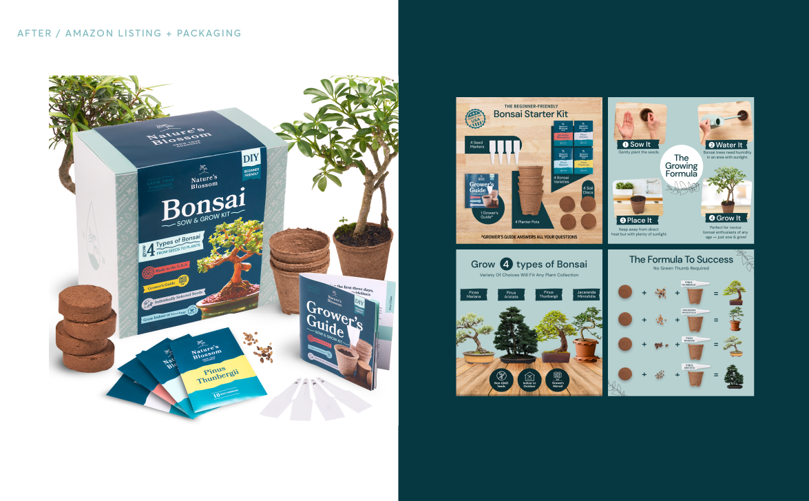 Since updating the packaging, there has been a decrease in negative reviews around receiving inaccurate product or difficulties germinating. As another touch point, we updated the videos on the listing page so the consumer had a clear understanding of what the kit is and difficulty level; it also serves as a reference if needed upon receiving the kit.